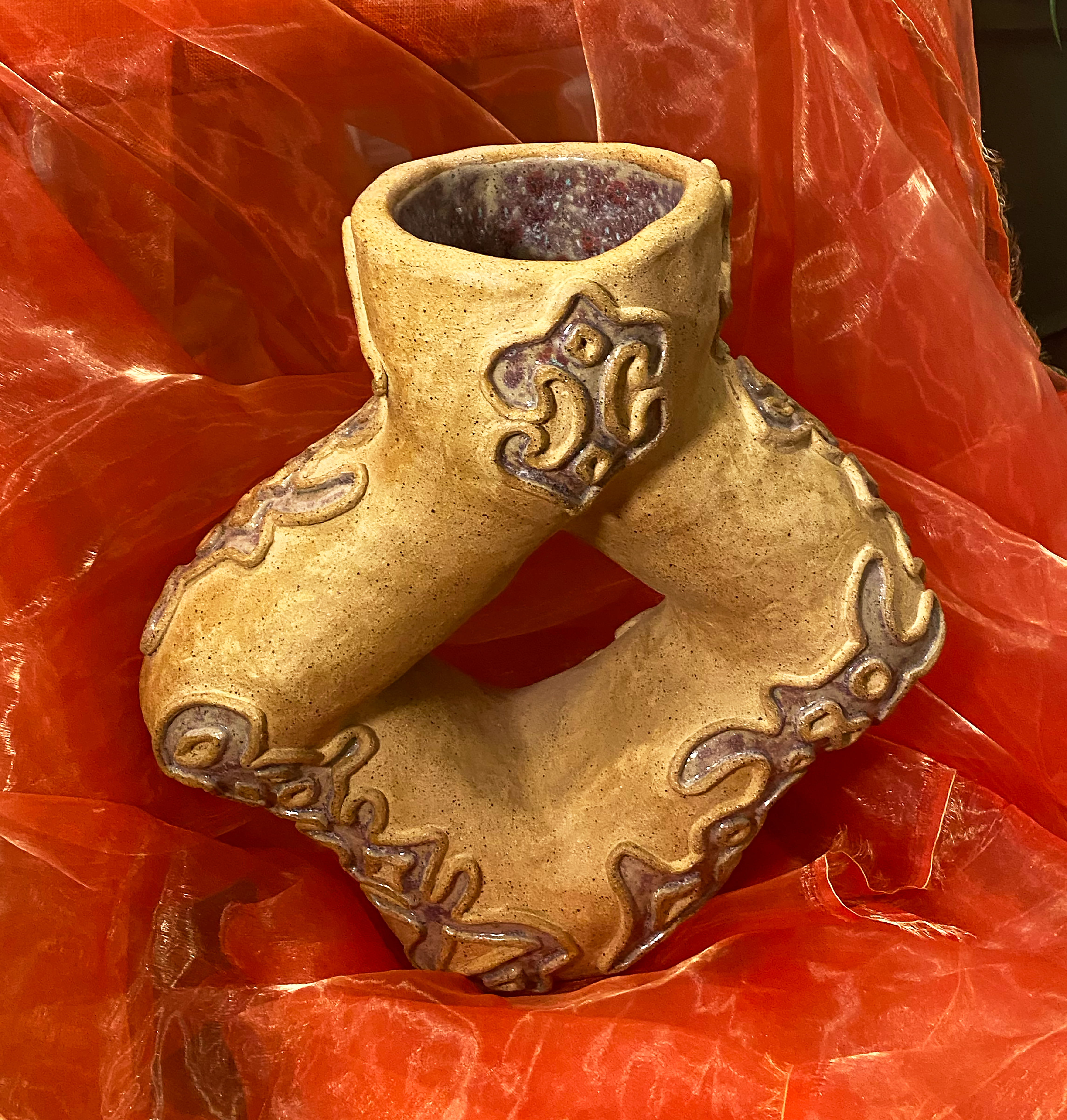 Through slab and coil building I search for new forms and motifs, transforming the traditional symbols through my own visions and building a new visual language, especially with my Motif Kreyòl Series in which I have created my own alphabet system that I inlay into clay recalling the keloid tattoos and skin markings of many African ethnic groups.