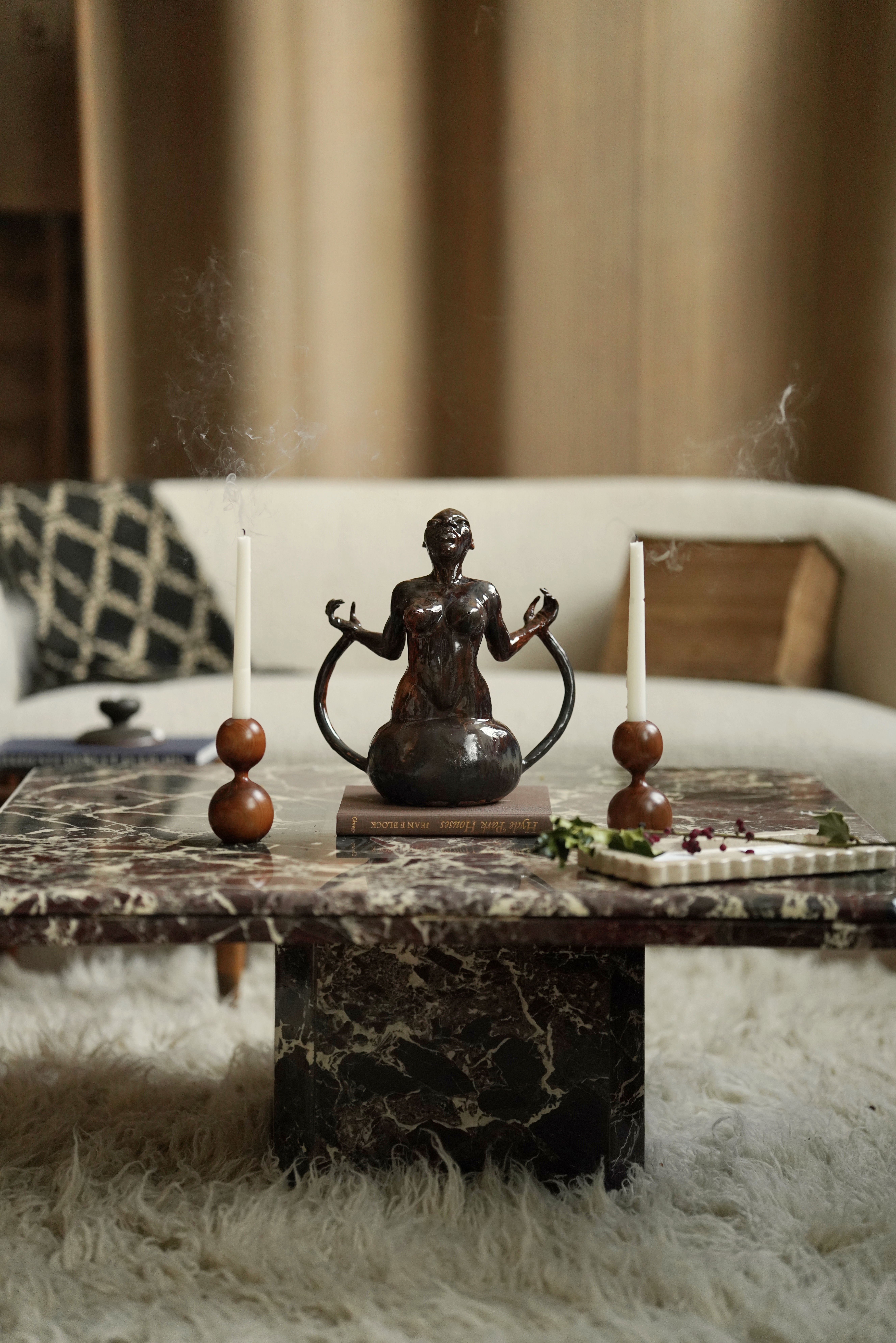 My journey of discovering ceramic sculpture was serendipitous. While observing African Masks, I began imagining African candles inspired by their forms. This has led me down a journey of discovering ceramic sculpture and deepening my knowledge of scent.